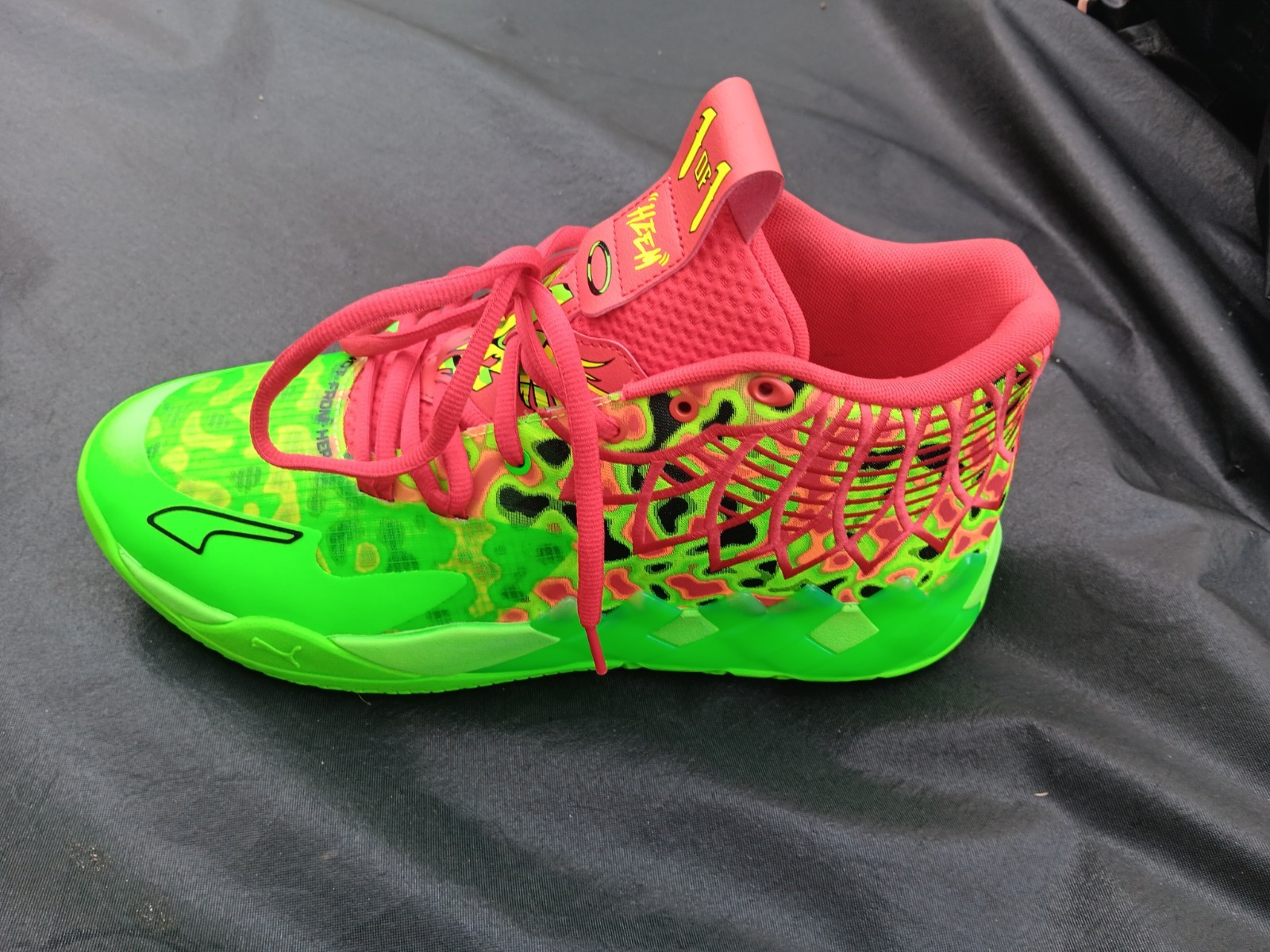 The Melo MB O1 Inverse sneakers by PUMA are designed for athletic activities, specifically basketball. These low-top sneakers feature a lace-up closure, multicolor design, and a mesh upper for breathability. The rubber outsole provides traction and durability, making them suitable for active wear. With a UK size of 11.5 and US size equivalent, these sneakers are stylish and functional for men looking for quality athletic footwear.