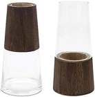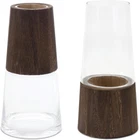 Melrose Wooden Tapered Vases - 11" - Brown and Clear - Set of 2