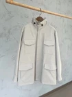 This Loro Piana jacket is the perfect addition to your wardrobe. Made with a dense membrane fabric, it provides protection from rain and wind while still being stylish and comfortable. The white color and basic jacket style make it versatile for any occasion. The jacket is made in Italy and is available in size M for women. Whether you're running errands or going out for a night on the town, this Loro Piana jacket is sure to keep you dry and looking great. Straight cut model with long sleeves, welt and patch pockets, stand-up collar, zipper closure, windproof button placket. A hidden drawstring will allow you to form a more fitted and structured silhouette, and a lining made of soft and warm fabric will keep you comfortably warm.