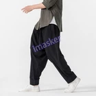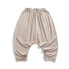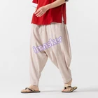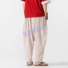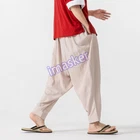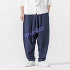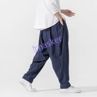 Men's Cotton Linen Harem Pants Elastic Waist Breathable Kung Fu Casual Trousers