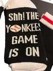 Men Crew Cotton Cushion MLB Baseball NY Yankees Socks 9-11 2 pair "SHH! THE YANKEES GAME IS ON"