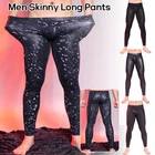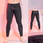 Men Shiny Sports PU Leather Leggins Underwear Skinny Long Pants Tight Leggings Description: Features: 100% Brand new and High quality Style: Sexy, Shiny, Stretchy Material: Polyester , pu leather Color: As shown in the pictures Size: One size, fit Waist 70-73cm/ 27 .5 -28.74inch, Hip 80-83cm/31.5-32.68inch. Length: 91cm/35.8inch. Package includes: 1 x Men Leggings