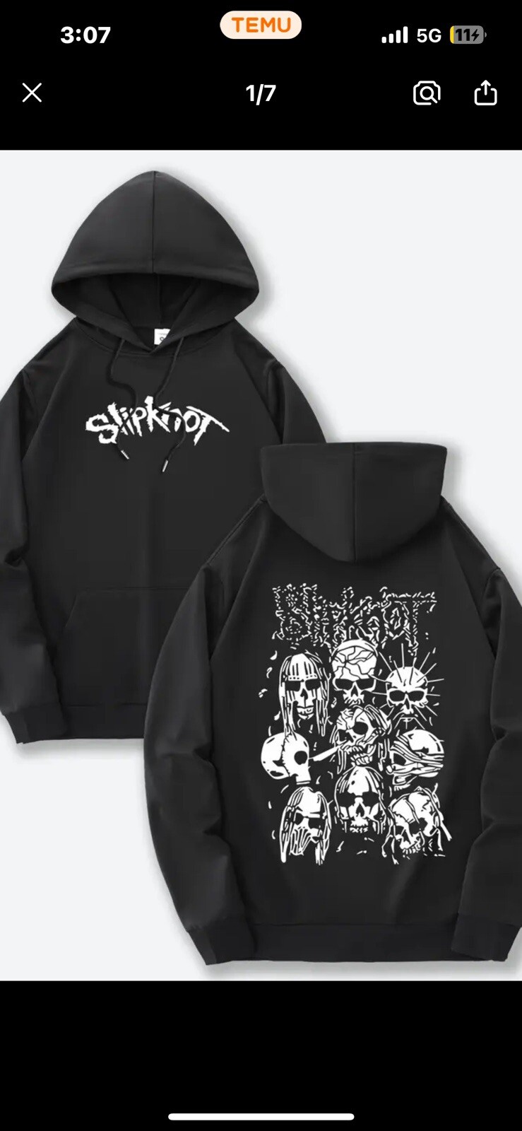 This hoodie is a must-have for any Slipknot fan! The fit is perfect for a 2XL, super comfy, and the print quality is sharp—both the band name on the front and the detailed masks on the back look awesome. The material is thick enough to keep you warm but still breathable. Definitely worth it for the price!