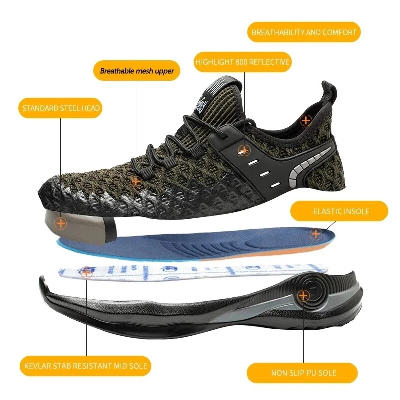 Men Safety Work Shoes Indestructible Steel Toe Boots Puncture-Proof Footwear