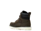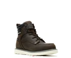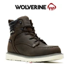 Men's Trade Wedge 6" Moc-Toe Work Boot EASY LANDINGS ON HARD SURFACES A lightweight rubber wedge outsole offers the flexibility and cushioning you need for long hours on your feet. A RAINY DAY IS JUST ANOTHER DAY Stay dry thanks to best-in- class waterproof full-grain leather with a wicking membrane that lets your feet breathe while keeping the water out. READY FOR IT ALL A classic moc-toe design delivers go-to style, while an optional steel-toe offers on- the-job protection. Product Details Bringing comfort and style closer to your foot, the Trade Wedge brings new life to Wolverine wedges. The lightweight, rubber wedge outsole allows for better flexibility. It creates added cushioning as it spreads the pressure evenly across hard surfaces to keep you on your feet throughout the day. SPECS & TECH • Premium waterproof full-grain leather upper • Breathable waterproof membrane with moisture-wicking mesh lining • Removable lightweight ETPU footbed for added cushioning and support • Lightweight rubber wedge outsole allows for flexibility and added cushioning • Lightweight cement construction • Iron shank provides additional protection • 1.45 lbs per boot based on 6" safety-toe style