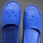 These Crocs slides are unisex and come in a blue color, suitable for both men and women. Designed with a slip-on and a round toe shape, they are perfect for casual wear and travel. With a solid pattern and a comfortable rubber outsole, these slides are great for outdoor activities and sports. The size is suitable for a men's 10 or women's 12, featuring a foam insole and a synthetic lining for added comfort. Ideal for the summer, fall, and spring seasons, these Crocs slides offer a stylish and practical option for everyday wear.