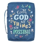 Durable: Protect your Bible from life’s mishaps with this stylish blue Bible cover for men/women made from sturdy poly-canvas material that is easy to clean and will withstand daily wear. Scripture Bible Cover: This fashionable blue case makes a great gift for loved ones, featuring dainty pink flowers surrounding the scripture sentiment, “With God All Things Are Possible.” Medium, Large Size: Note that specifications are exterior Bible cover dimensions. To ensure best fit measure Bible precisely & to size chart. Allow extra room to avoid a too snug fit. Secure Zipper Closure: Ensures your Bible stays clean and safe inside. Interior and exterior pockets provide extra space for organization. Convenient Accessories: Interior pen loop secures your pen or highlighter when not in use. Handle is easy to hold, and additional back pocket allows for more storage.