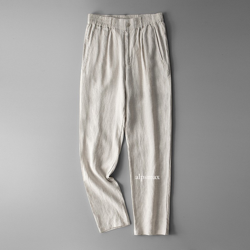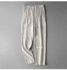 Men's Slim Fit Linen Ankle Pants - Elastic Waist Business Casual Trousers