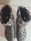 The Crocs Classic Lined Neo Puff Boots in size Men's 12 and Women's 14 feature a trendy Tie Dye pattern in Black color. These Unisex Adults Snow Boots are designed with a Round Toe and Thermal Lined interior for extra warmth. The outsole is made of durable rubber, while the upper material is rubber as well, making them both stylish and practical for cold weather conditions. Worn just a few times;) Crocs Crocs Classic Lined Neo Puff Tie Dye Boots 'Black White' 207328-001 Unisex Comes from my clean, non-smoking home to yours with love;). I will ship this using ground advantage. If you would like to upgrade to Priority shipping, please let me know and I will change the setting to allow you to upgrade. I do my best to do next business day shipping. I dont ship on Saturdays, sorry;). Thank you for looking;).