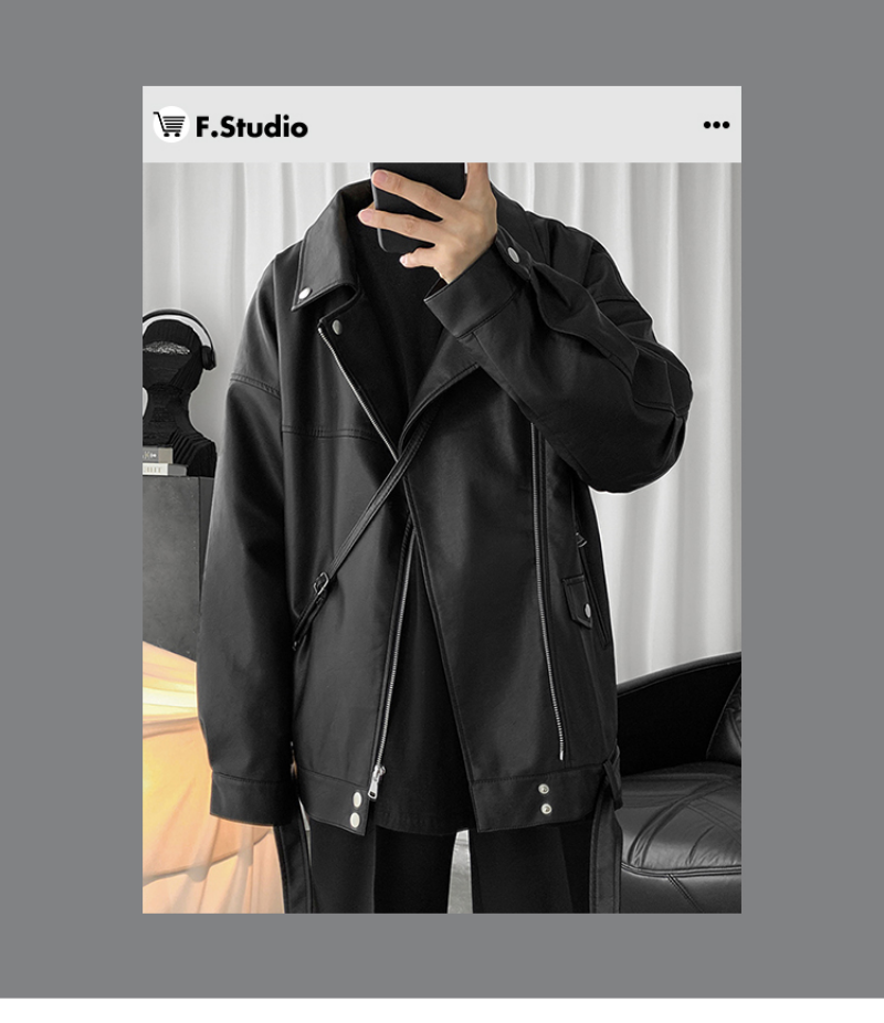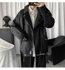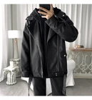 Men's 2023 Black PU Leather Jacket Trendy Lapel Autumn Coat