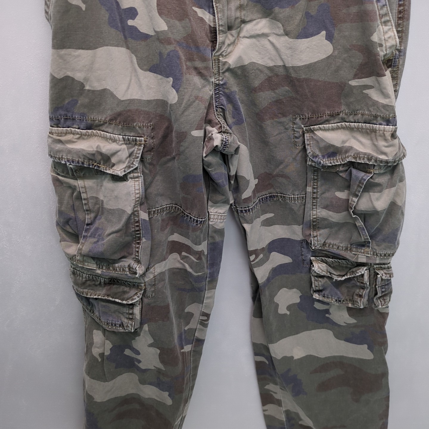 These cargo pants are a steal for the price! The camouflage design looks sharp, and the pre-owned condition is still in great shape—no major wear or stains. Super comfortable with plenty of pocket space, and they fit true to size. Shipping was fast too. Perfect for outdoor adventures or casual wear. Highly recommend!