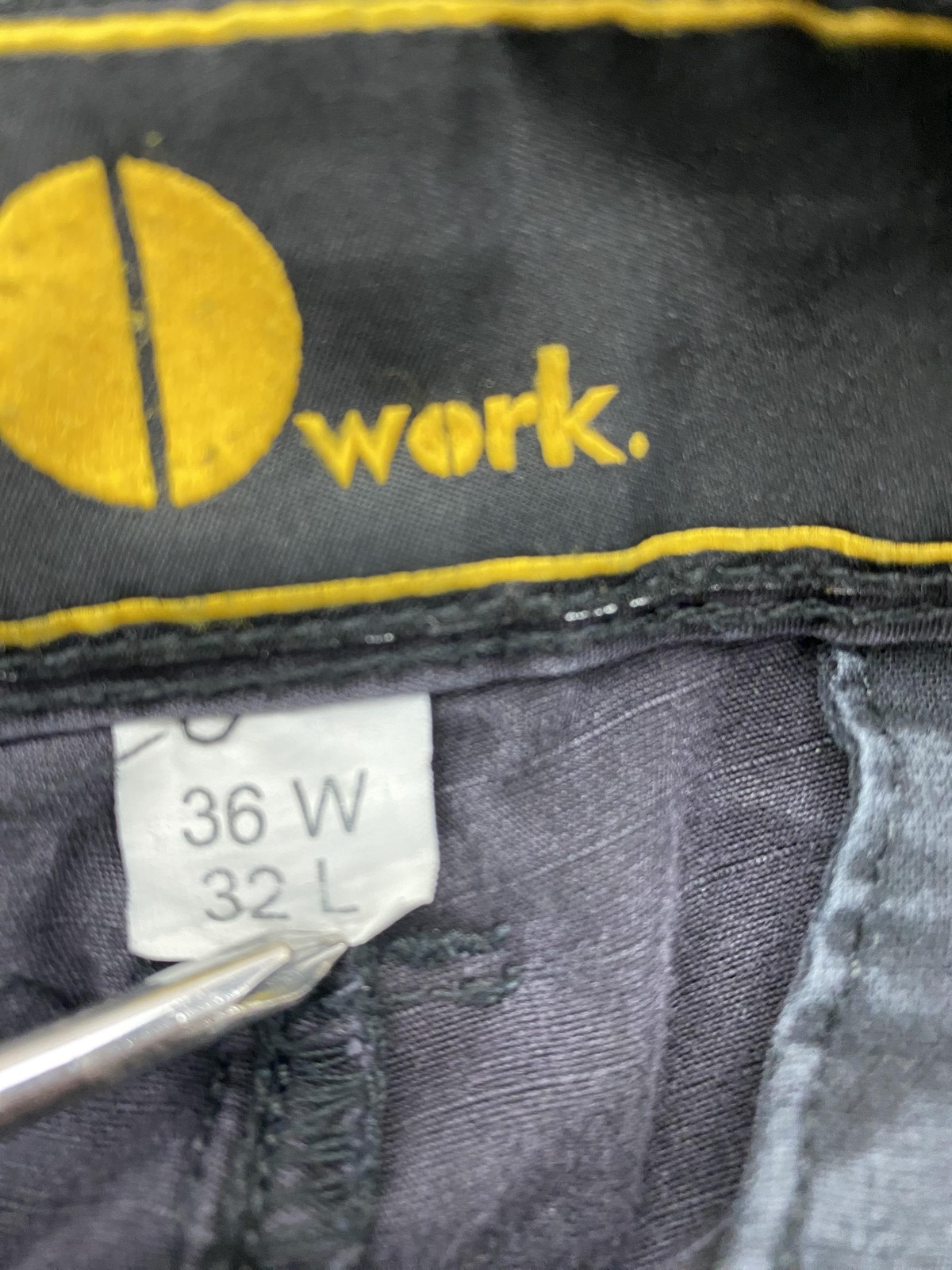 Work Pants Mens 36x32 Black Cargo Utility Ripstop Double Knee Relaxed Fit Durable Condition: Good used condition with minor wear, including light signs of use and a small scuff on the lower right leg as shown in photos. Brand: Work by Whitebuck Color: Black Size: Mens 36x32 (tagged 36 W 32 L; please review all measurements and photos for best fit) Features: Ripstop fabric for durability, cargo pockets, elastic waistband sections for comfort, D-ring utility loop, reinforced/double knee sections, and relaxed straight leg fit. Visible Work logo branding on waistband and left cargo pocket tag. Material: Not specified on visible tags All measurements shown in photos for reference Versatile and functional, ideal for work, outdoor, or utility use