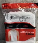 Elevate your athletic wear with this Men's 3ct Athletic Fit A-Shirt in White Crown. Crafted from 100% cotton, this sleeveless tee features a crew neck for a comfortable fit. The adjustable feature allows for a customizable fit suitable for any season - winter, summer, fall, or spring. This T-shirt is machine washable for easy care and maintenance. The white color and simple pattern make it a versatile addition to any wardrobe. Perfect for workouts or casual wear, this shirt is a must-have for any style-conscious man.