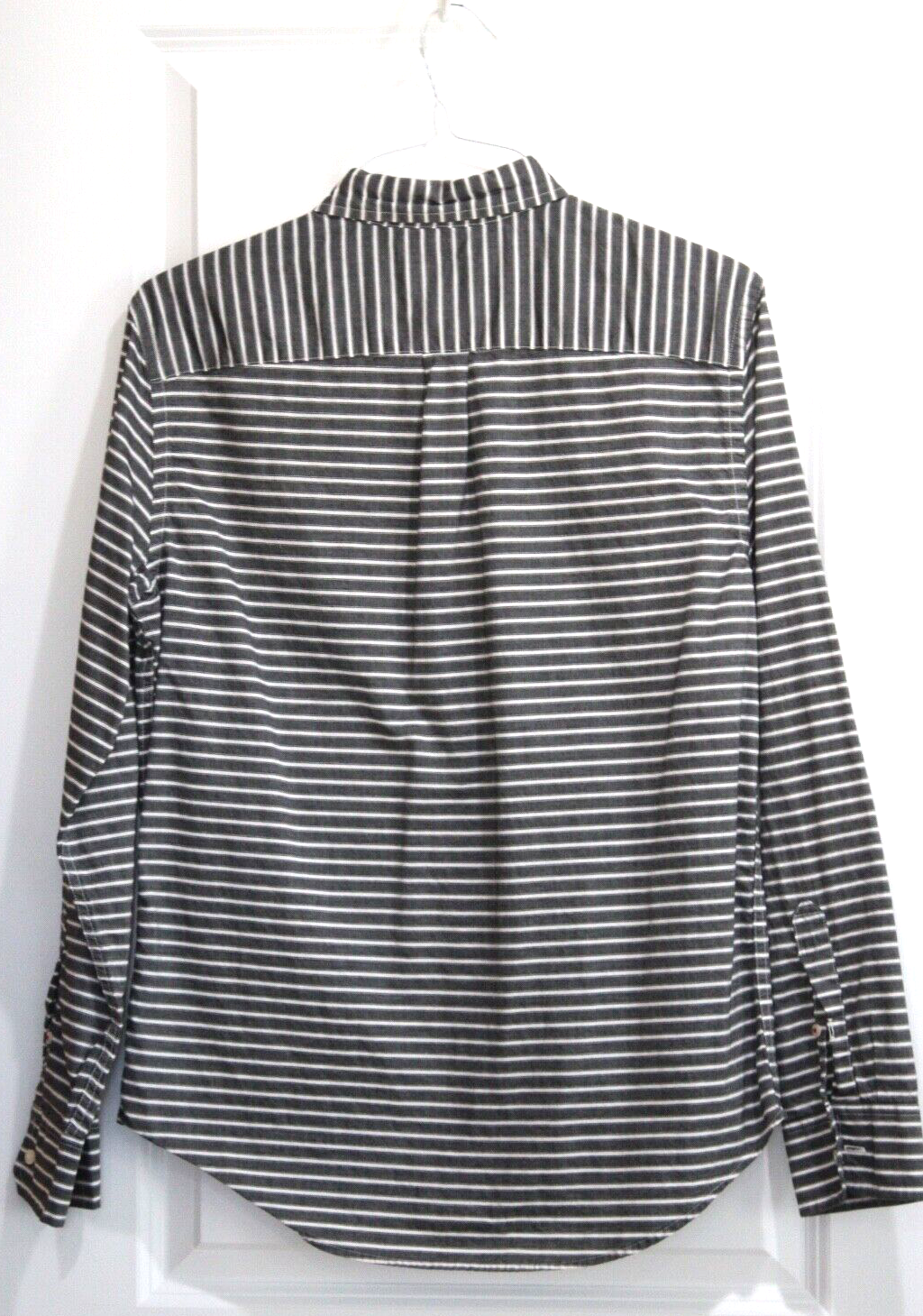 Mens AMERICAN EAGLE OUTFITTERS Long Sleeve Button Down - Size Medium, Prep Fit 100% cotton Chest pocket Button Down Collar Gray with white stripes and embroidered logo on chest pocket New without tags