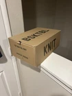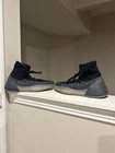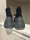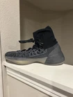 This is a men's adidas Yeezy basketball shoe in slate blue, featuring a high-top sneaker style with a lace-up closure. It is a size 12.5 with a standard shoe width. The shoe is made of Primeknit material and is designed for comfort and performance. The model is GV8294 from the adidas Yeezy product line, released in 2021.