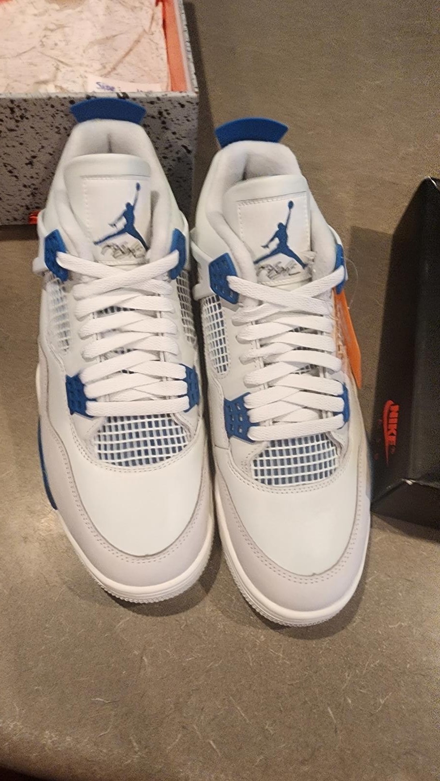 Air Jordan 4 Retro 'Industrial Blue' Men's Shoes - Off-White/Neutral Grey/Military Blue Air Jordan 4 Retro 'Industrial Blue' Step into a classic. This AJ4 throws it back with full-grain leather and premium textiles. Iconic design elements from the original, like floating eyestays and mesh-inspired accents, feel just as fresh as they did in '89.