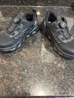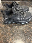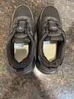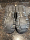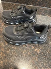 These men's work boots feature a black color with a striped pattern, a round toe shape, and a button closure. They are designed for workwear, with a steel toe for safety, slip-resistant rubber outsole, and lightweight, breathable construction. The boots are anti-smash and anti-puncture, making them suitable for various seasons throughout the year.