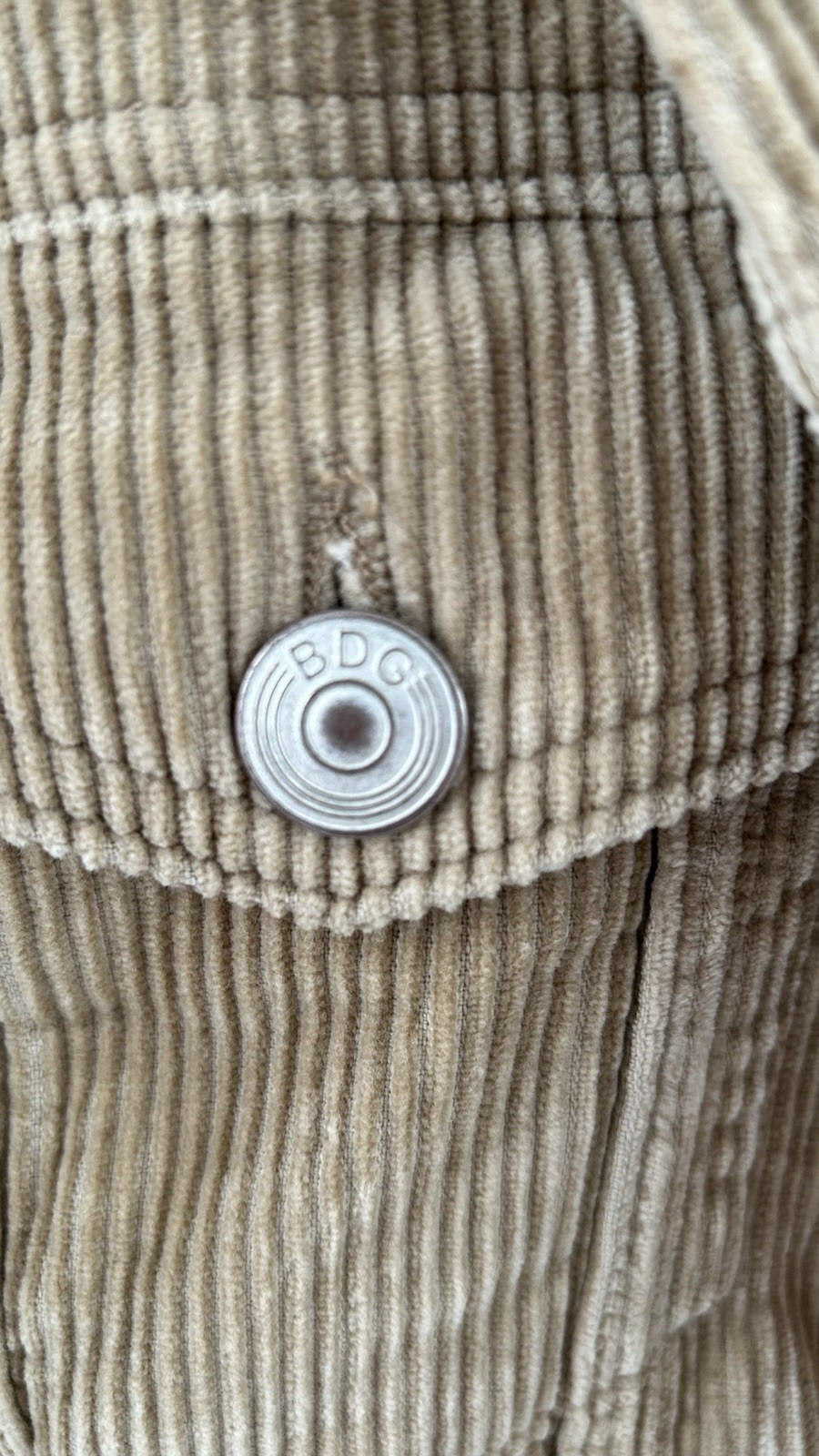 Elevate your style with this trendy BDG corduroy jacket in a stylish beige colour. Perfect for men who love a bomber or biker style, this jacket is a must-have addition to your wardrobe. The jacket features a button-up front and is made of high-quality fabric, ensuring comfort and durability. This jacket is perfect for casual occasions and can be paired with any outfit. Its medium size and regular fit make it a great choice for men of all sizes. Add this jacket to your collection and stay on-trend all year round.