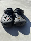 You’re looking at a pair of men’s black crocs. These crocs are a size 11 men’s come with four charms featuring a pizza charm a game controller, charm, headphone, charm, and a mushroom charm. NOTE: the left croc on the heel is a little bent, but will relax after use. These crocs were barely worn. They are in great condition. There is some signs of wear. All sales are final All items come from a smoke and pet free environment Shipping for this item is only $8.99 ( love to combine by shipping ) If you have any questions, please feel free to ask thank you for looking and happy bidding