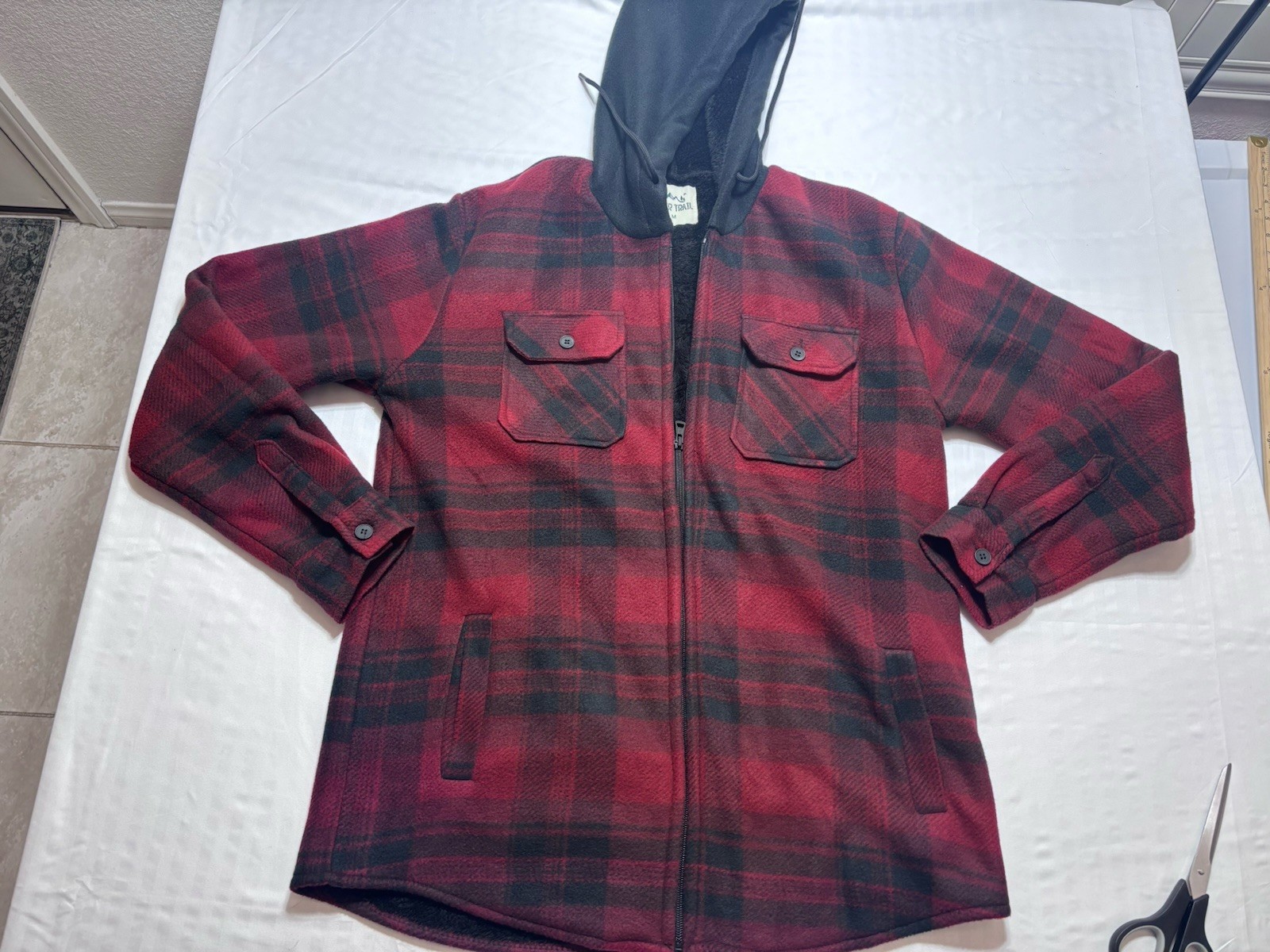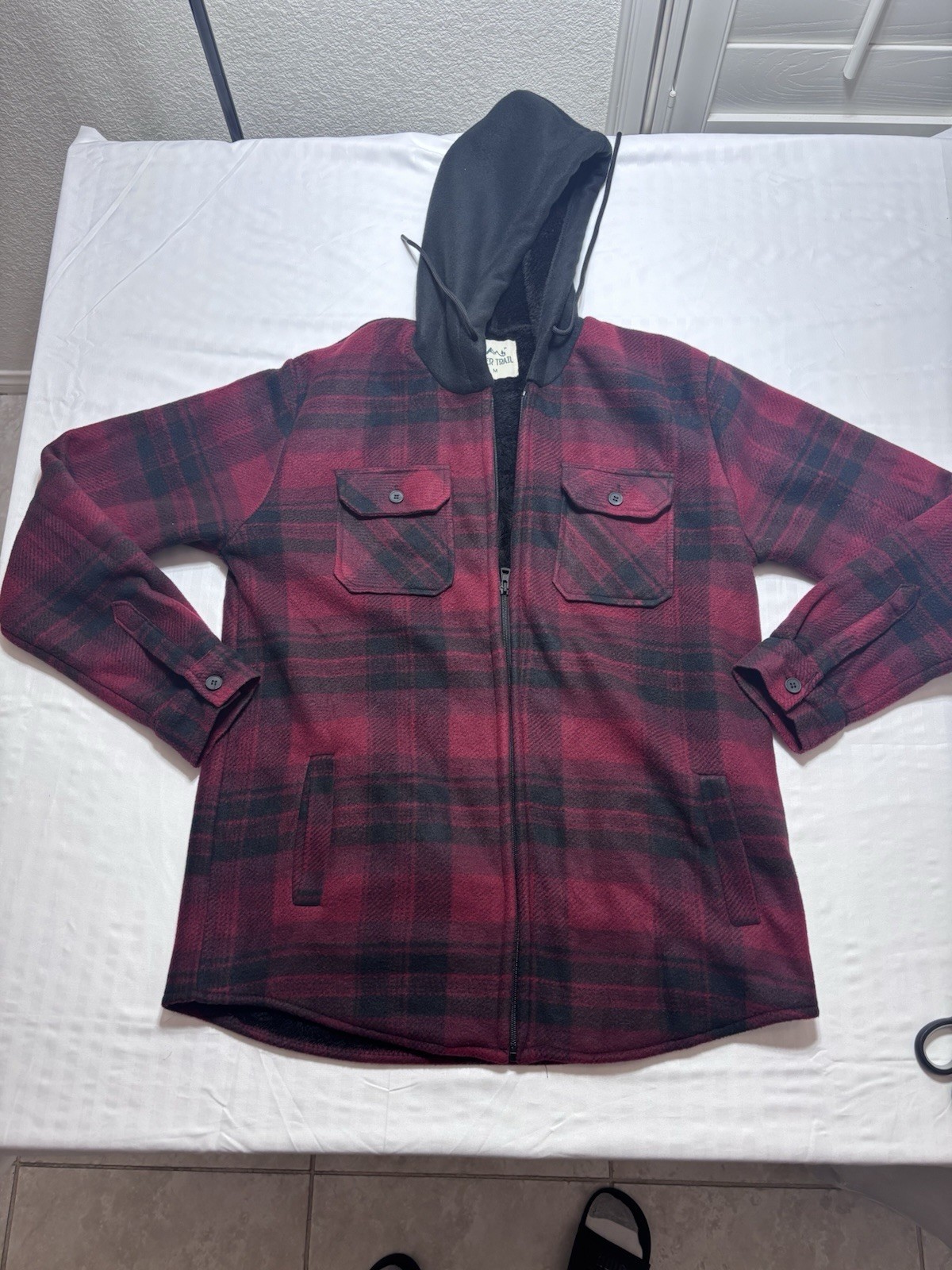 Men's River Trail Black / Red Plaid Zip-Up Hoodie Jacket pockets Size Medium Very Nice new no tags shipped with usps ground advantage.