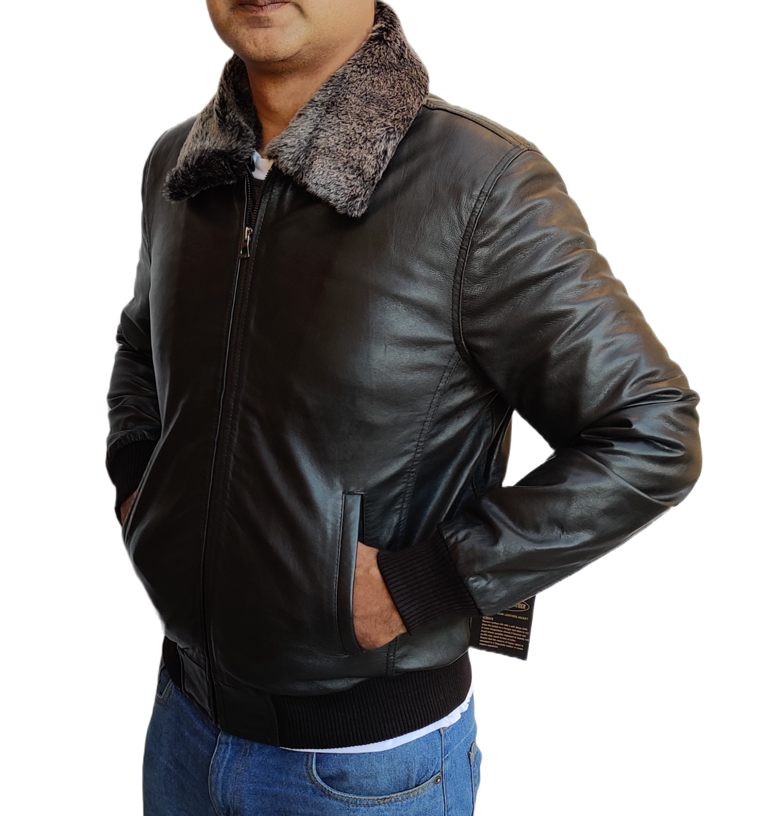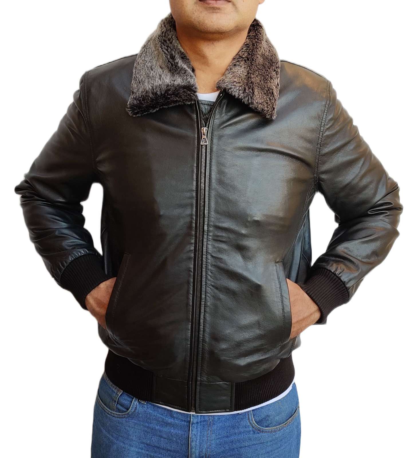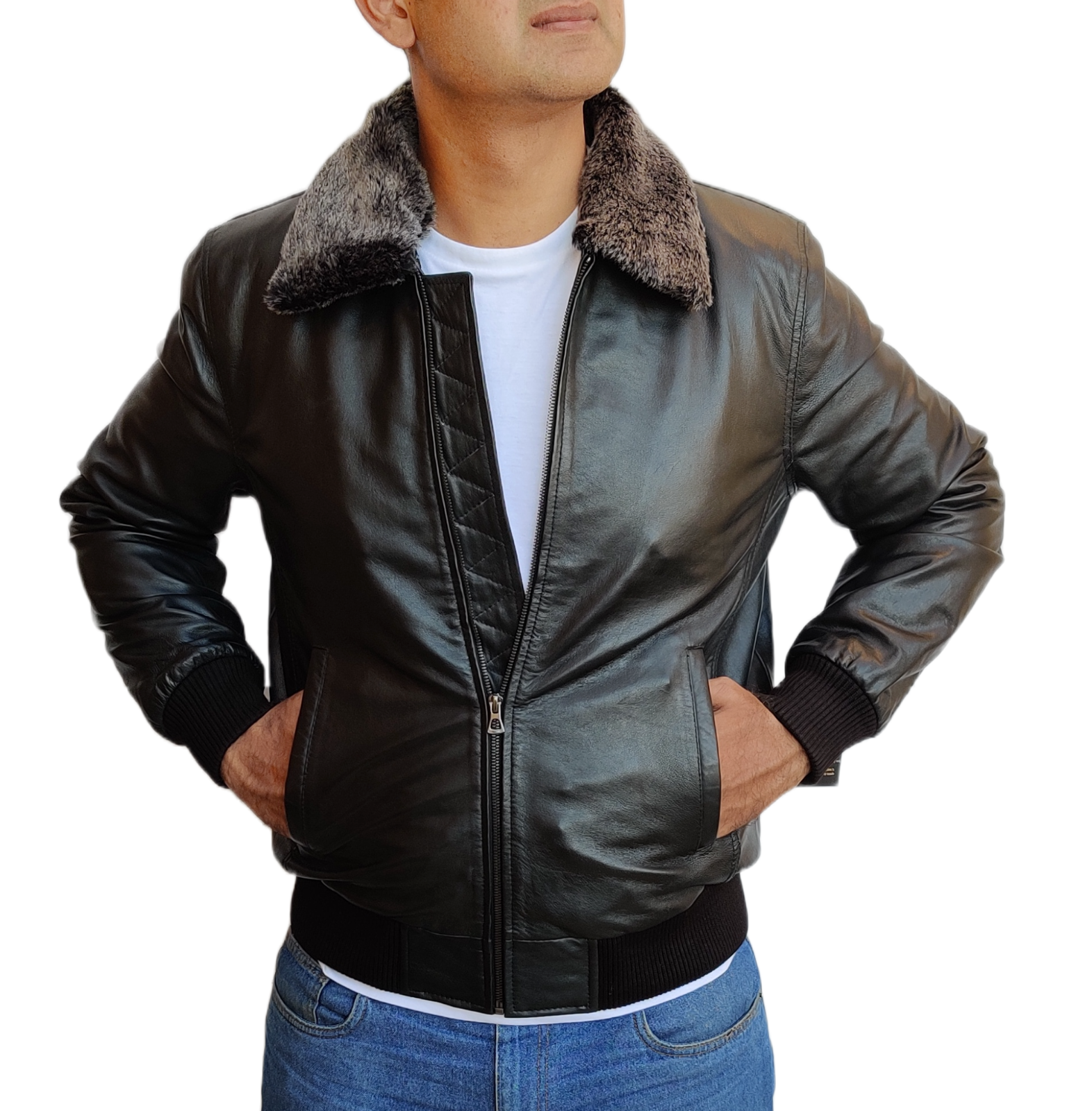 Smart Black Genuine Sheepskin Leather Pilot Style Jacket With Detachable Fur Collar - Mens Classic & Minimalist Aviator Design Jacket Features: Premium Quality: Made from 100% genuine sheepskin leather with fur collar - Closure: Zip front with Collar - Pockets: - 2 side pockets - 2 extra pockets inside (polyester lining) - Hardware: YKK zippers - Durable stitches for longevity Important Notes: - Customization: Contact us before placing an order for customization options - Sizing: Refer to the size chart in the product photos for accurate sizing