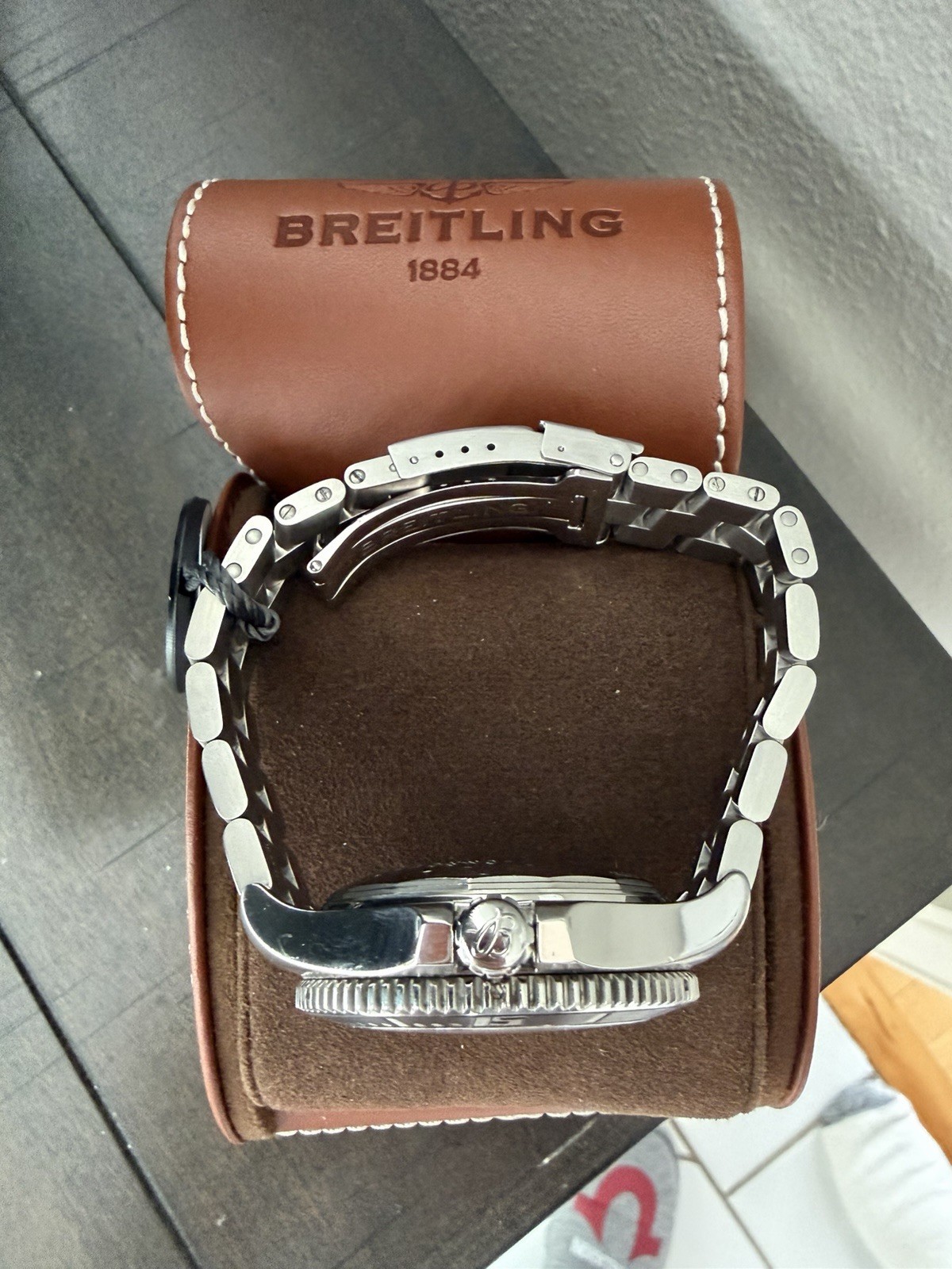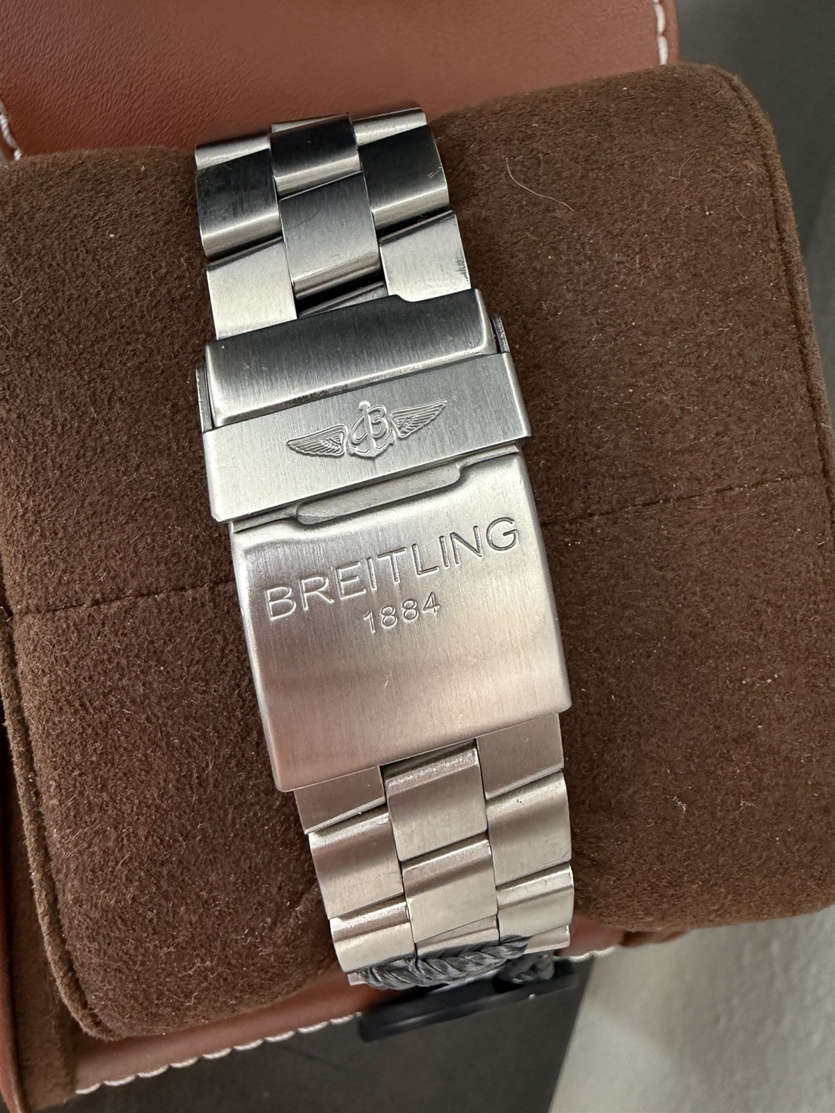 The Men's Breitling Superocean A17391 Steel 44mm Black Dial Automatic is a stylish and luxurious wristwatch designed for divers and sport enthusiasts. With a sleek stainless steel case and bracelet, this Swiss-made timepiece features a unidirectional rotating bezel and a date indicator for added functionality. The black dial with 12-hour markers adds a touch of sophistication to this automatic mechanical movement watch. Complete with a travel case, this Breitling Superocean model is a must-have for those looking for a high-quality, elegant timepiece.