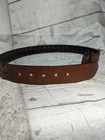 Men's Brown Faux Leather Woven Arrow Belt - Adjustable - Measures Approximately 44.5" L including buckle Good Pre-owned Condition