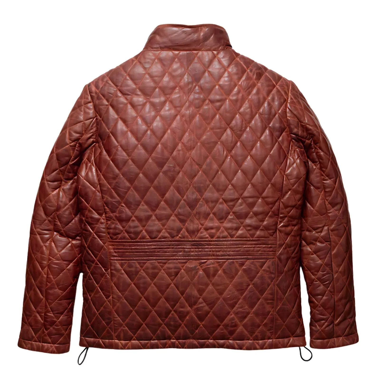 Men's Dark Brown Lambskin Quilted Bomber Puffer Leather Jacket