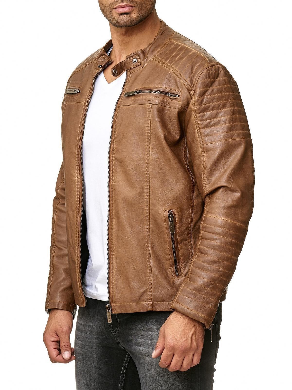 Men's Brown Premium Leather Handmade Genuine Lambskin Moto Biker slim fit Jacket Bulk Quantity Order Available. Please contact US for more Information Specification: Fabric: 100% Genuine leather/ Pu Leather Lining: 100% polyester; Filling: 100% cotton, can be worn as a standing collar jacket Front: Zip Closure, Multiple Pockets with internal viscose lining are key features of mens Black leather jacket. Zip closure and hip length provide great wind resistant, Inner rib stand collar,adjustable cuffs and hem help a personalized fit in warmth This Black leather jacket men is a modern fit jacket. For an accurate size, please refer to the size chart provided in the picture. Fit type: Regular