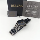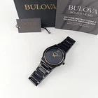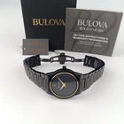 Men's Bulova Millennia 98A313 Black & Gold Dial Stainless Quartz Watch 41MM New General Specifications Brand: Bulova Series: Millennia Model: 98A313 Gender: Men's Packaging: Official Bulova Packaging Product Specifications Watch Movement: Quartz Display: Analog Watch Resistance: 3 atm (30 meters) Case Specifications Case Shape: Round Case Material: Stainless Steel Dial Colour: Black, Gray Accent Needles Colour: Golden Case Width: 41 mm Strap Specifications Lug Width: 14 mm Strap Type: Stainless Steel Bracelet Strap Colour: Black Glass Material: Sapphire Clasp Type: Deployment Clasp with Push Button Crystal: Domed Sapphire Crystal Metal Finish: Brushed, Polished Metal Plating Type: Ion-Plated Product Description A masterclass in modern design, this sophisticated timepiece from the Bulova men's Modern collection will add a contemporary edge to your wardrobe. The black IP stainless steel case design features a metalized domed edge-to-edge sapphire crystal that extends to form the black bezel of the timepiece, while a sleek silhouette flows seamlessly into a matching black IP stainless steel bracelet with brushed center links and a push-button deployant closure for a sleek profile. A gold-tone case ring encircles the dramatic black dial, which pushes the limits of minimalism with no markers and angular gold-tone hands. An uncompromising commitment to modern design, this Bulova men's timepiece will push any wardrobe beyond convention. Black ion-plated stainless steel 41.0mm case with edge-to-edge sapphire crystal Dramatic black dial, with sleek gold-tone hands Black ion-plated stainless steel bracelet; deployment clasp Water resistant to 30 meters Shipping *We ship in within 1 or 2 business days after payment is received except holidays & weekend. Returns *We accept returns within 30 days of purchase. ❀Thank you for shopping with us!❀