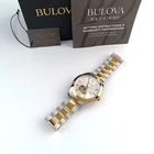 Men's Bulova Surveyor 98A284 Silver-Gold Two-Tone Stainless Automatic Watch General Specifications Brand: Bulova Series: Surveyor Model: 98A284 Gender: Men's Packaging: Official Bulova Packaging Product Specifications Watch Movement: Automatic Display: Analog Water Resistance: 30m (3 ATM) Luminescent Dial Or Hands: Yes Case Specifications Case Shape: Round Case Material: Stainless Steel Dial Colour: Two-Tone (White/Silver-Gold) Case Width: 42 mm Case thickness: 12 mm Strap Specifications Strap Type: Stainless Steel Bracelet Strap Colour: Black Band width: 22 mm Band Color: Gold, Silver Clasp Type: Deployant Clasp with Push Buttons Product Description Part of the Surveyor line, this classic automatic watch offers all of the detail and fine quality you would expect in a luxury watch, at an accessible price. The two-tone design in a gold and silver-tone stainless steel case and bracelet is paired with a silver-tone dial with gold-tone accents and an open aperture to view the movement’s balance wheel and escapement. The screw-back case is topped with a mineral crystal exhibition window to show the automatic movement powering the timepiece. From the Bulova Men's Classic Collection, inspired by vintage design, our classic watches achieve a tailored, understated look that's always in style. 3 Hand, Automatic, Hack Feature Two-Tone Stainless Steel Mineral Crystal Shipping *We ship in within 1 or 2 business days after payment is received except holidays & weekend. Returns *We accept returns within 30 days of purchase. ❀Thank you for shopping with us!❀