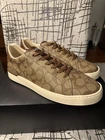 Mens COACH Signature Logo Coated Canvas Low Top G4949 Sneaker/ Shoe (Khaki/Saddle) Size 11.5 Coach Signature Logo Coated Canvas Sneakers DESCRIPTION Named for the bustling trail on New York City's West Side, our High Line sneaker combines sophisticated good looks with maximum comfort. Crafted of our Signature Logo print coated canvas and smooth leather, the low-top silhouette features a comfortable cushioned insole and a lightweight EVA outsole. feature: * Signature coated canvas and leather upper * Lace-up closure * Fabric lining and footbed * EVA outsole