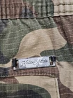 Elevate your casual style with these Maison Article cargo pants in a trendy camo pattern. Made from lightweight and breathable cotton material, these pants feature an elastic waist with drawstring closure and five cargo pockets for practicality. The pants are designed with a relaxed fit and straight leg style, making them comfortable and stylish for any occasion, whether it's for travel or just a casual day out. The pants also come with accents such as a logo and zipper, adding to their army and sports-themed design. These camo cargo pants are perfect for any season, with their high-rise waist and breathable material. Machine washable for easy care, these pants are a must-have addition to your wardrobe.