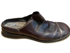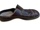 Crafted for everyday comfort, these men's slip-on shoes feature durable leather construction and elastic panels for ease of wear. A versatile casual option. • Durable leather upper with stitch detailing • Elastic panels for easy wear • Cushioned insole for added comfort • Neutral brown color for versatility • Lightweight sole for everyday use Visible scuffs on the leather and wear on the insoles. Heel to toe = 12 inches Width at widest point = 4 inches