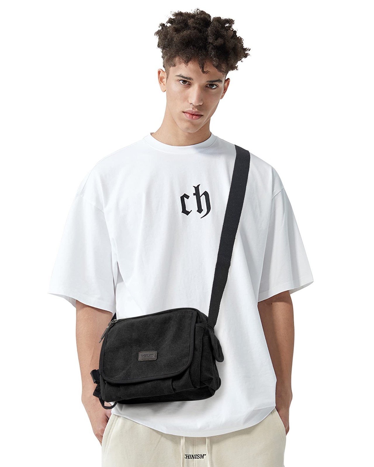 Small Messenger Bag Material: Made of high-quality canvas, rich in texture, not easy to damage, safe and durable. Multiple pockets Shoulder Bag:1 zip pocket on the back, 1 side pockets, slip pocket under the flap; inside the bag there is a large main zip pocket, 2 slip pockets and 1 pencil storage bag. Anti-Theft Crossbody bag: 2 sturdy snaps on the front and a large zipper closure keep your things safe, and the anti-theft zipper on the back can be used to store valuables such as mobile phones, wallets, etc. Dimensions: The outer dimensions of this canvas messenger bag are 12.6x9.45x4.7 inches, shoulder strap length: 23.2-51.9 inches, it can hold multiple items at the same time. Adjustable shoulder straps: Adjust the length of the shoulder straps at any time, metal adjustment buckle, fashionable and durable. Suitable for commuting, work, party, etc.
