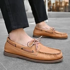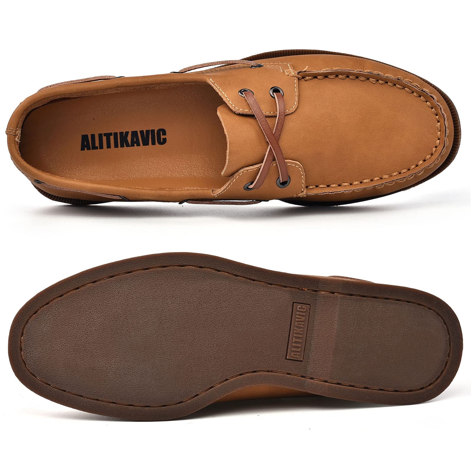 Mens Leather Boat Shoes Leather Upper: This loafers feature a high-quality unlined leather upper for long-lasting wear and soft comfort. Lacing System: 360-degree cowhide lacing system provides ample abrasion resistance and stability. Elastic Insole: Double-layer EVA foam insole has excellent resilience and provides some arch support. Relieve the stress when you walk. Rubber Sole: This leather boat shoes features a high-density rubber sole that provides ample traction and abrasion resistance.The grooves on the sole are filled with extra double layer of latex,which provide adequate cushioning. Classic Design: Hand-stitched moccasin style toe cap, Rust-resistant eyelets, Extra memory foam padding on the forefoot, Makes this casual shoe very fit and comfortable.