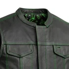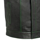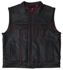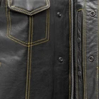 Leather club style vest, that fits just like standard club vests. It's got a one-inch collar, and cropped center zipper for comfort while sitting on the bike. A Satin lining keeps you comfortable, and also has an easy access zip so you can easily add patches or embroideries. And of course, it's got our conceal carry pockets! Features: Premium 1.1 mm Diamond Naked Cowhide Leather – Durable, supple, and built to last Club Style Design – Clean front with a one-inch collar , covered snaps , and a hidden cropped center zipper for a sleek, low-profile look Sharp contrast that enhances the vest’s overall aesthetics Functional Storage – Two snap-down chest pockets Two snap-down slash hand pockets One interior conceal carry pocket (right side) One quick-access conceal carry pocket (left side) One interior cellphone pocket (left side) Mesh Lining with Access Panels – Designed for easy patchwork or embroidery application Heavy-Duty YKK Zippers – Known for reliability and strength Perfect for Riders & Club Members – Combines classic styling with tactical functionality