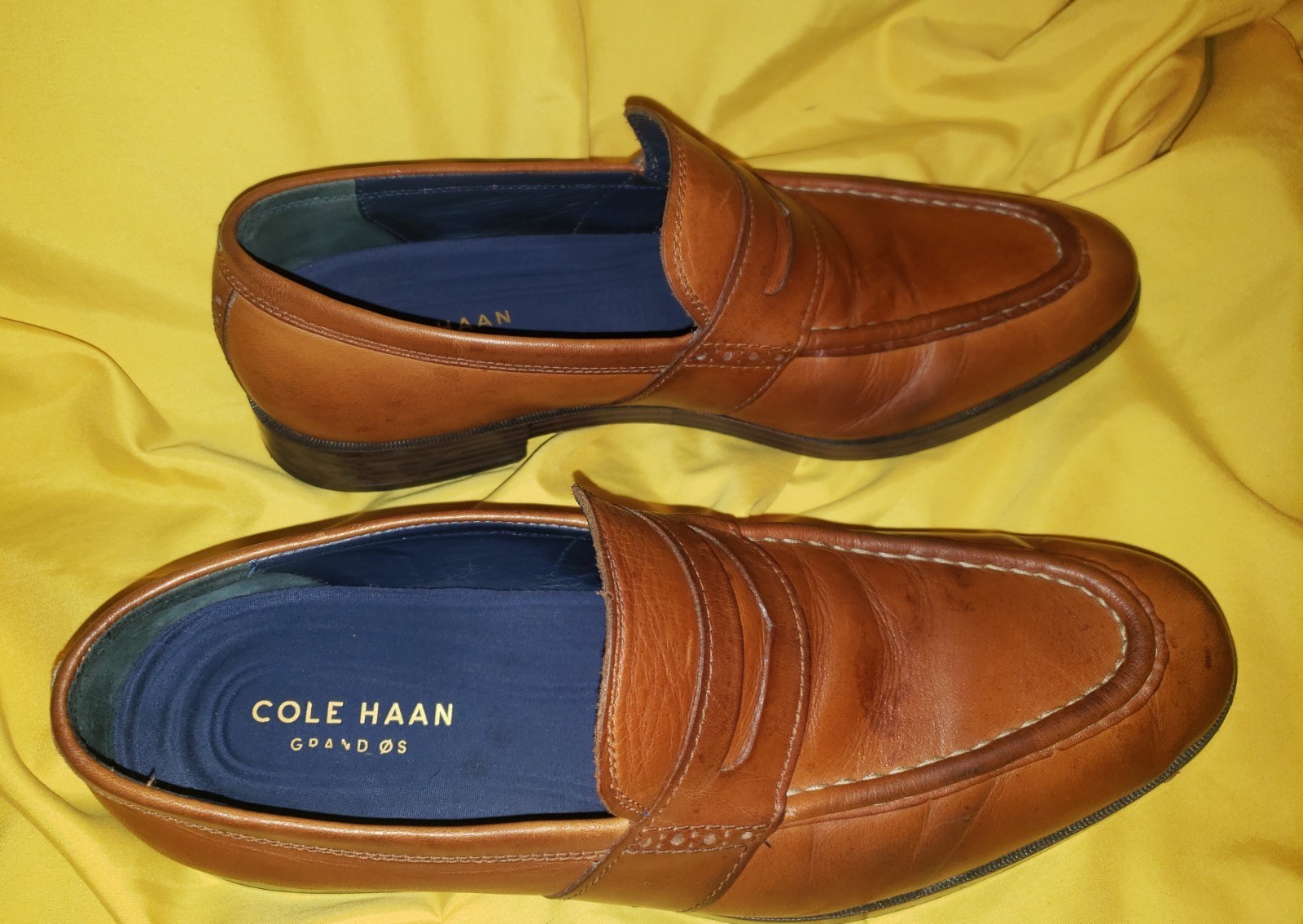 The Men’s Cole Haan Jefferson Grand Penny Loafer Dress Shoes in size 10.5 are a stylish and comfortable choice for any man's wardrobe. Made with leather and featuring a slip-on closure, these brown loafers from the Cole Haan Grand product line are perfect for dressing up any outfit. The classic penny style and high-quality construction make these shoes a versatile and durable option for any occasion.