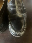 The product is a pair of Men’s Cole Haan Classic Black Penny Loafers in size 8D. These dress shoes are crafted from black leather with a D width and leather insole. The outsole is also leather, making them durable and stylish for any formal occasion. These loafers are part of the Cole Haan Pinch product line, combining classic design with modern comfort and quality. Ideal for those looking for a sophisticated and timeless addition to their wardrobe. These insoles were removed to accommodate orthotics. Otherwise they are in mint condition. If you utilize orthotics, these will be the perfect pair for you. Priced to sell!
