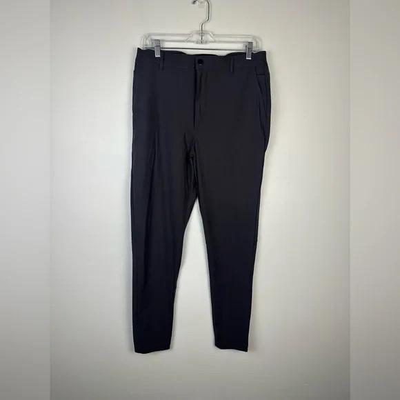 Modern jogger cuff with clean finish front and rear elastic Side elastic at waistband for comfort and flexible fit Snap closure with hook and eye and zippered fly Gusset for comfort and mobility One secure hidden zippered pocket Direct X embroidery at calf Two rear welt back pockets Two on-seam hand pockets One coin/key pocket Belt loops Sz L Inseam Tall 30.5