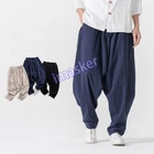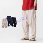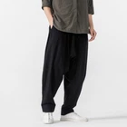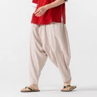 Men's Cotton Linen Cropped Drop Crotch Pants Summer Casual Chinese Style