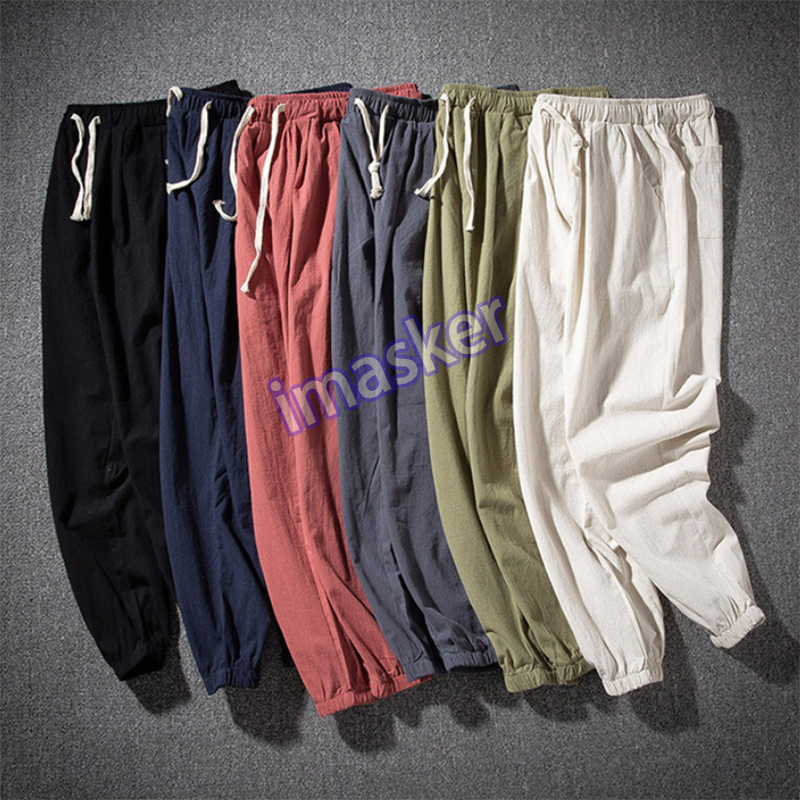 $ 5.53Mens Linen Cotton Tapered Pants Pockets Trousers Summer Baggy Bottoms Retro Soft