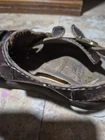 The product is a pair of Doc Dr. Martens Men's Sandals in brown leather, made in England and in size 10. These sandals feature a solid pattern, fisherman character, and a slip-on style with a adjustable buckle closure. The outsole is synthetic, and they are designed for casual occasions with a retro 90s outdoor theme. Made by the iconic brand Dr. Martens, these sandals showcase their signature logo accents and offer durability and style for the modern man.