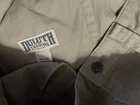 Up for sale is a pair of men's Duluth Everyday Twill Relaxed Fit Carpenter Pants. These pants are made of 100% cotton canvas and come in a beige color. They feature a flat front, straight leg, and a button closure. The pants are sized at 40x29, though the tag states 38x30. They are pre-owned but still in great condition. These pants are perfect for work or everyday wear and have many pockets for storage. Don't miss out on the chance to own these high-quality pants! Paint specks as seen in first pic
