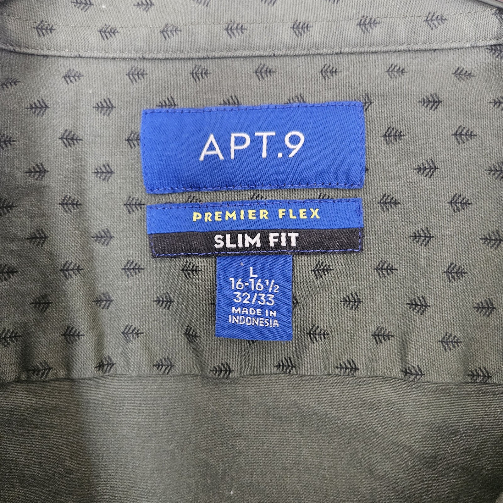 Mens Oeko-Tex Large 16-16 1/2" 32/33 Premier Flex Slim Fit Button Up Shirt Trees Stretchy Boho Gorpcore.No Rips Or Stains and is in Excellent Pre-owned Condition.