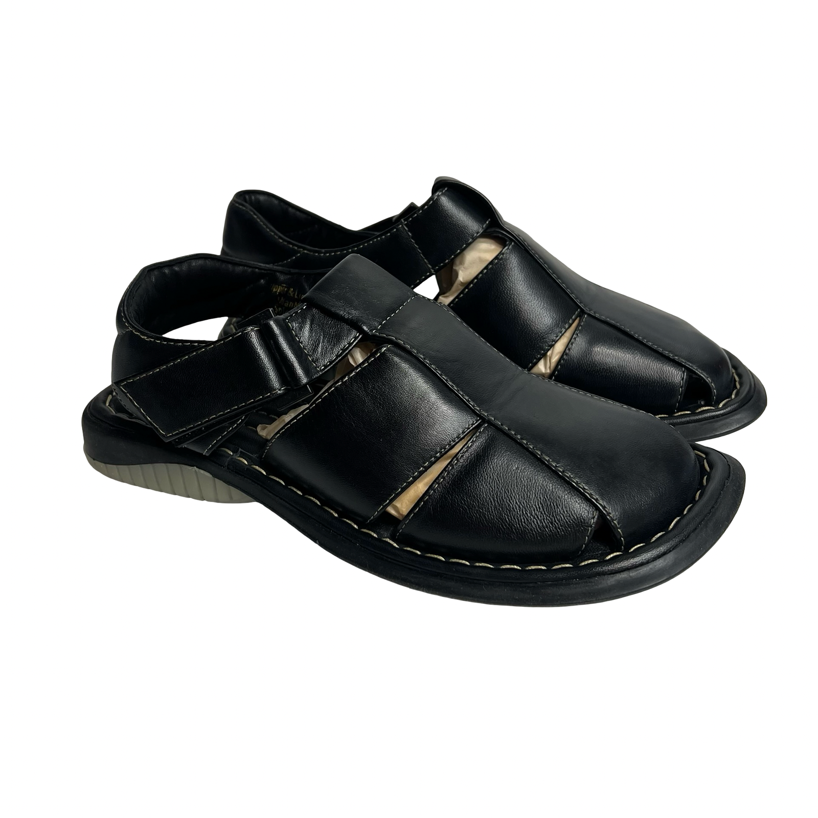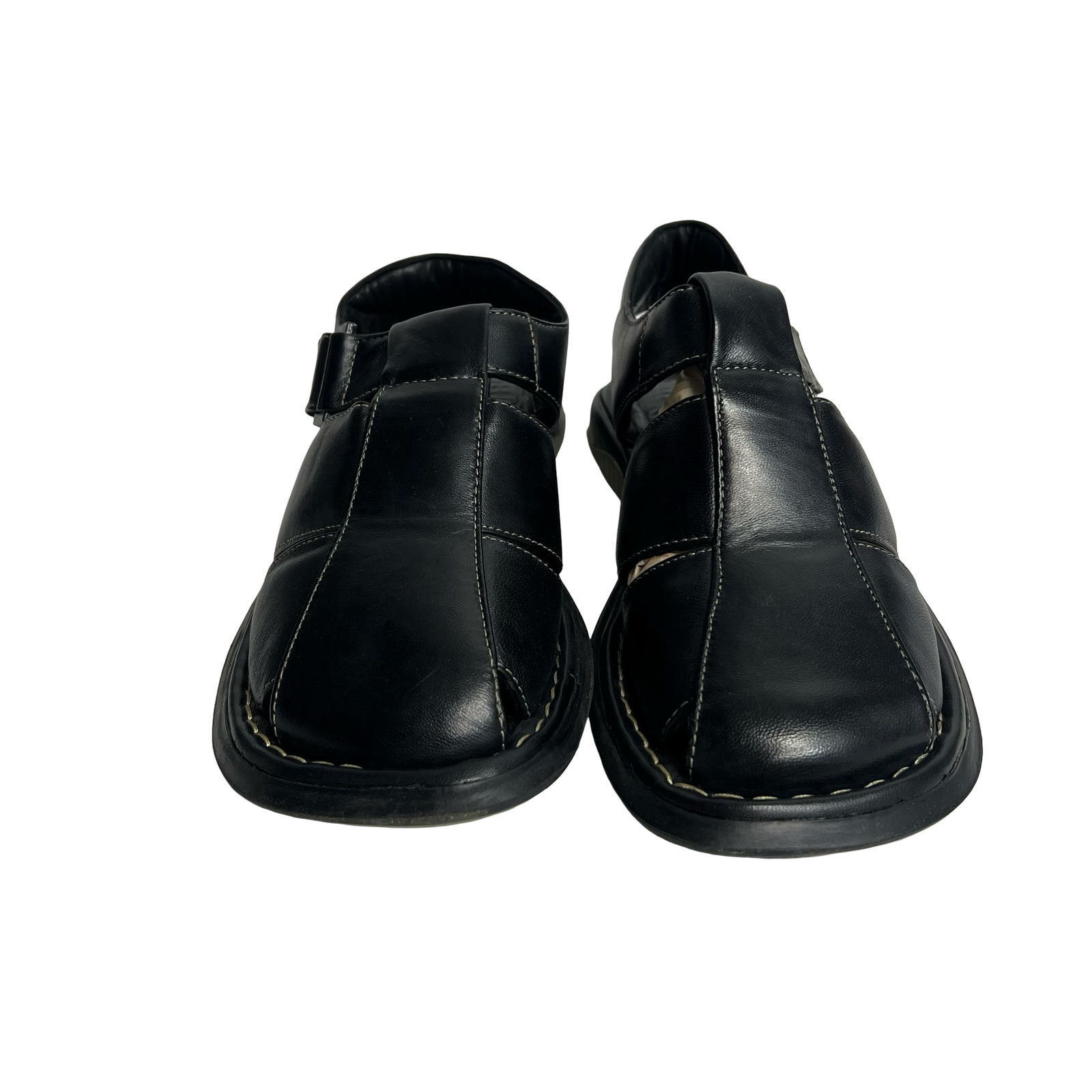 GBX Shoes Mens Size 8 Black Leather Fisherman Sandals Open Toe Comfort Casual Condition: New without box. No visible signs of wear. Extra tissue paper and packaging included. Box shows shelf wear and creasing (see photos). Premium quality black leather upper with contrast stitching Classic fisherman sandal design with cutouts for breathability Hook and loop adjustable strap closure for easy on/off and secure fit Padded synthetic insole and collar for all-day comfort Flexible, two-tone non-marking rubber outsole for traction Style/Model: 9263-1 Material details (from tag): Upper and lining leather, manmade sole Marked size: 8 D (Mens) Color: Black with beige accent on outsole and inner lining All brand markings and labels clearly shown in photos Great casual sandal sandals for summer, travel, or everyday comfort