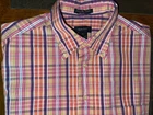Mens Gant Liberty Bell Poplin Short Sleeve Plaid Button Front Shirt XL All cotton Regular fit Great looking pink, orange and purple multi plaid short sleeve button up shirt Pocket Measures 25x33 Excellent used condition VERY NICE SHIRT FROM SMOKE FREE HOME. FAST SHIPPING WITH TRACKING INFORMATION PROVIDED.