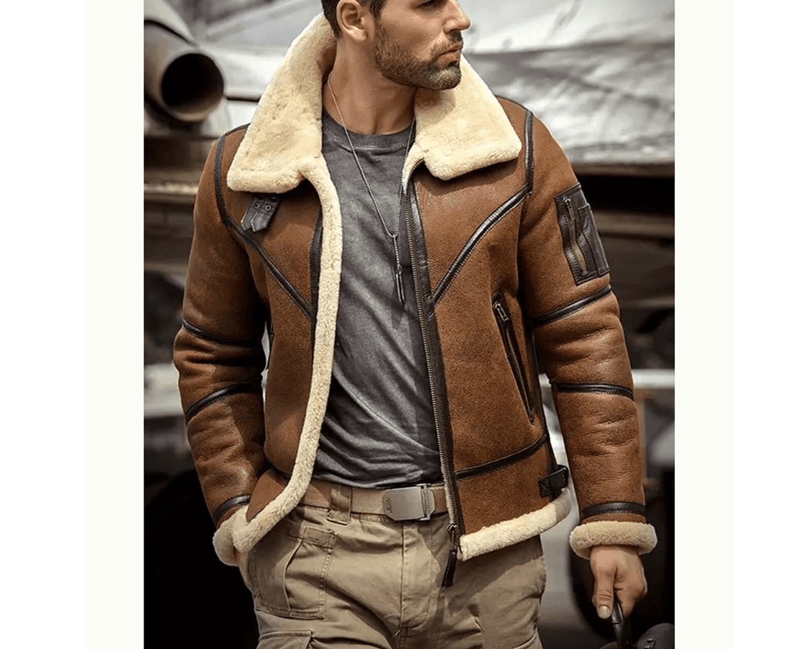 🛩️ SHEARLING B3 AVIATOR JACKET – MEN'S BOMBER FLIGHT REAL LEATHER WINTER COAT Rugged Warmth. Classic Military Style. Stay warm and stylish with this men's shearling B3 aviator jacket , designed for freezing conditions and high-altitude flair. Made from 100% premium high-quality sheepskin leather , it features a plush shearling lining for unbeatable comfort and insulation. This real leather bomber flight coat brings together iconic WWII style and modern craftsmanship—built for winter, riding, or everyday cold-weather wear. Whether you're after a pilot jacket , military bomber , or a rugged winter leather coat , this piece delivers durability, warmth, and timeless edge. 🔧 Specifications Material: Premium Sheepskin Leather Color: Classic brown with off-white shearling Lining: Full internal soft shearling Collar: Buckled shearling collar Front Closure: Heavy-duty zip Cuffs: Turn-up shearling cuffs Waist: Adjustable leather side straps Pockets: 2 side hand-warmer pockets 1 inner pocket Back: Plain vintage-style back panel Style Tags: shearling B3 aviator jacket | men's bomber flight coat | real leather winter jacket | pilot bomber coat | sheepskin leather jacket | WWII aviator jacket | brown leather flight jacket 📏 Size & Fit Available in S to 4XL 📌 Tip: For layering, consider one size up 🚚 Shipping Info Fast worldwide shipping via DHL, UPS, or FedEx 📦 Dispatch within 2–3 business days ✅ 30-Day Money-Back Guarantee Return for a full refund within 30 days—no hassle, no stress. 💬 Need Help? Our support team responds in under 15 minutes during business hours. 🛒 Add this classic aviator bomber to your cold-weather wardrobe today and brave the chill in style!
