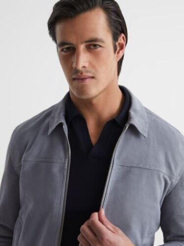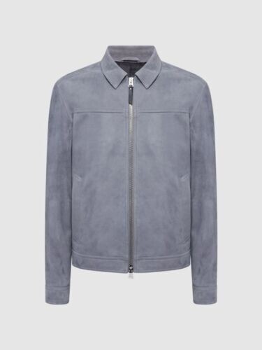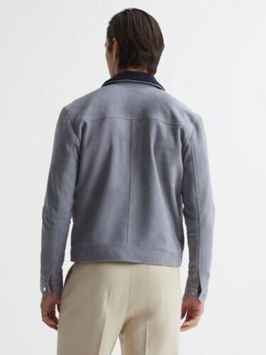 Men's Soft Suede Leather Bomber Jacket in Purple