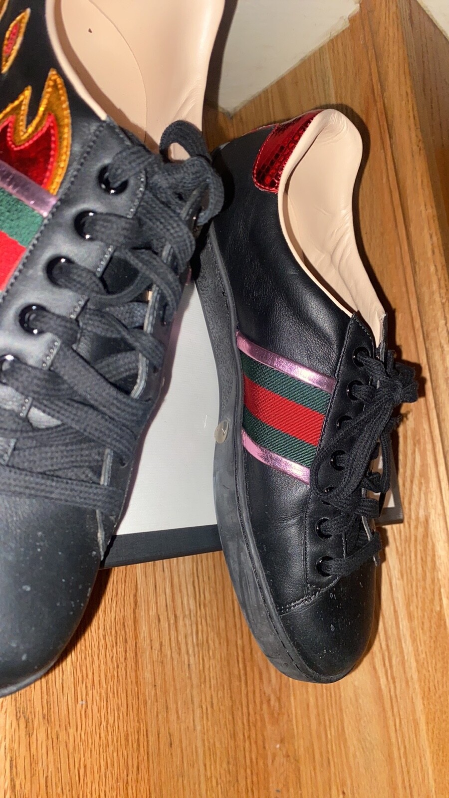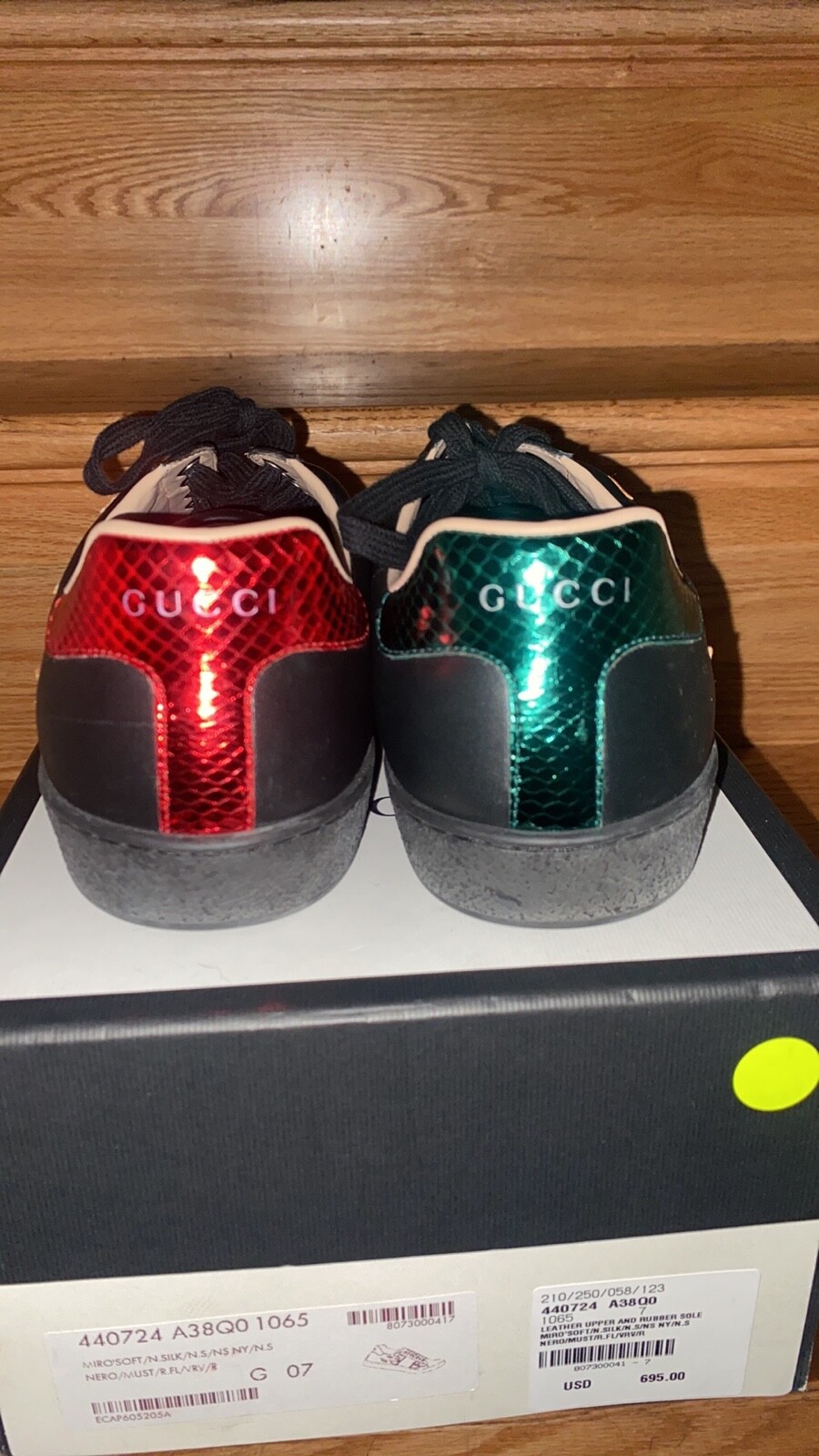 These Gucci sneakers are a total steal! The limited-edition black and multi-colored design is so stylish and eye-catching. They fit perfectly and feel super comfortable—definitely worth it for the price. The quality is amazing, and they still look brand new. Highly recommend for anyone looking for luxury sneakers without the crazy price tag!